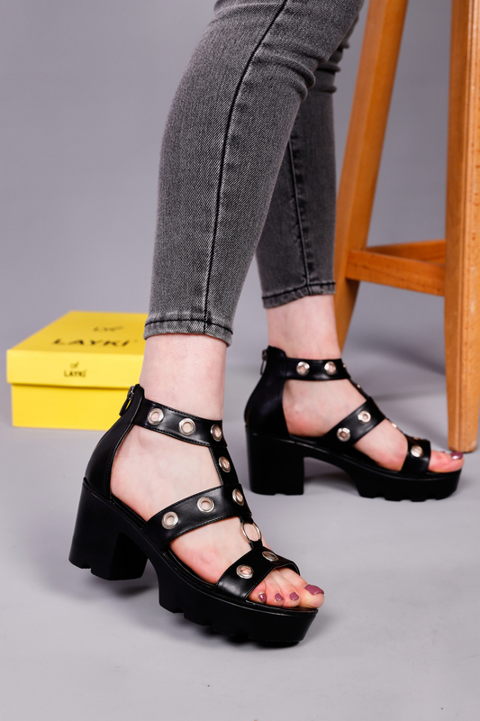 صندل صيفي كعب - اسود