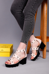 صندل صيفي كعب - بيج