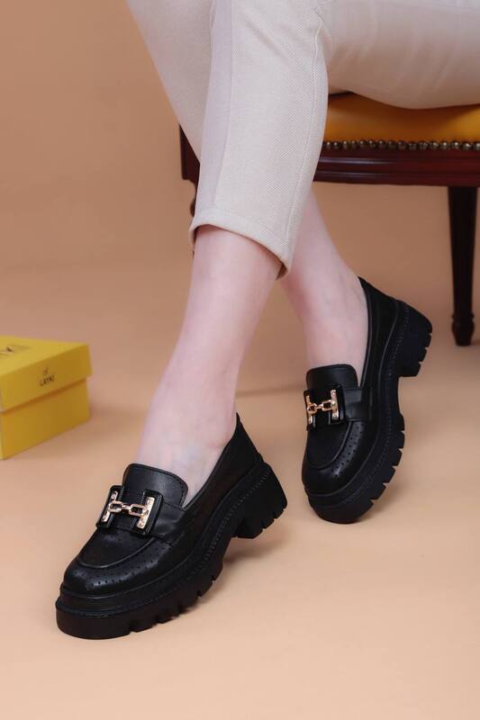 جزمه جلد اسود مع اكسسوار الماس