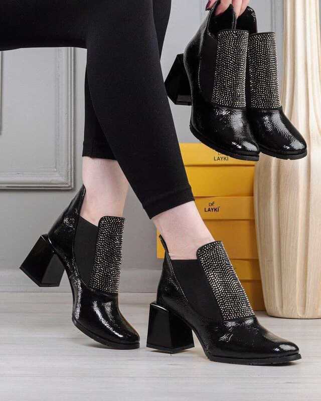 جزمه جلد اسود مع اكسسوار الماس
