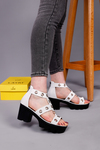 صندل جلد صيفي كعب - ابيض